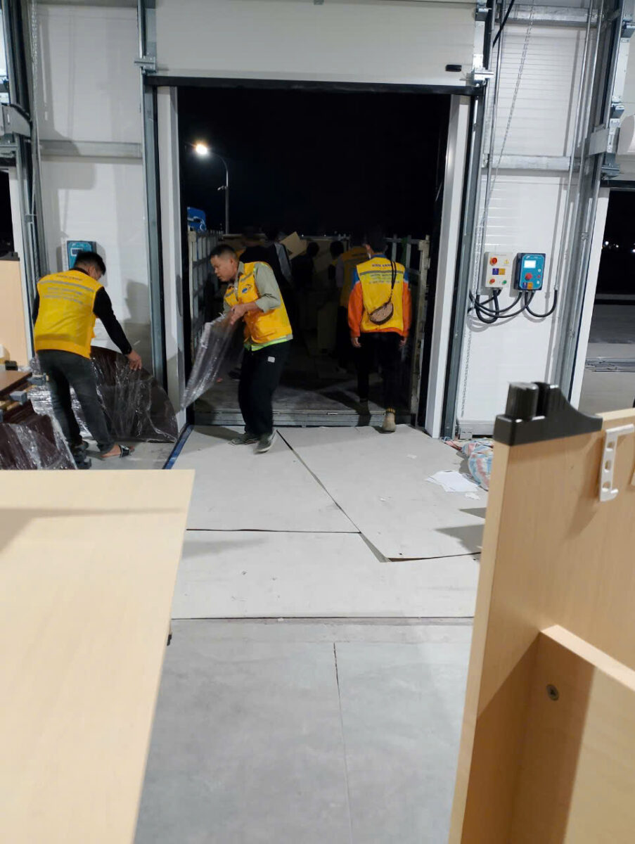 Đội ngũ nhân viên tháo dỡ, đóng gói an toàn bằng vật liệu chuyên dụng, sau đó vận chuyển bằng xe tải phù hợp.